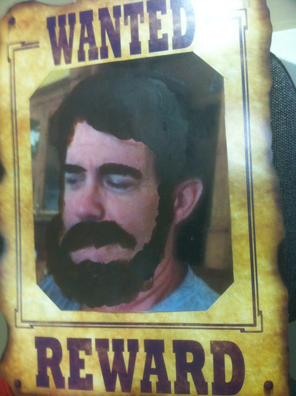 When I got back to the office, I found this “Wanted” poster hung up over my office door. Someone had taken a picture I had posted on Facebook, “doctored” it, and blown it up into the image you see. Not the most flattering likeness I will admit — but still, it is very nice to know that you are “Wanted”!