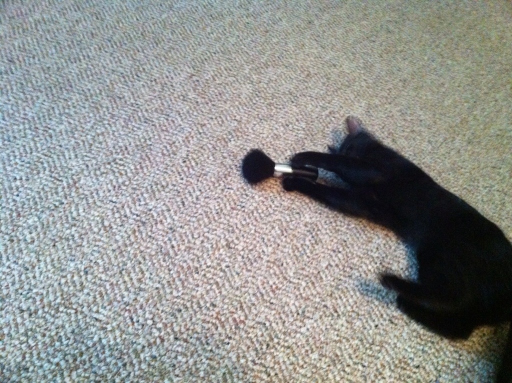 Speaking of Eponine, she not only launches fake attacks at the “wagon train” as it goes by — she is starting to live up to her potential as a great hunter. She brought her first “kill” up to me on the carpet, see:
