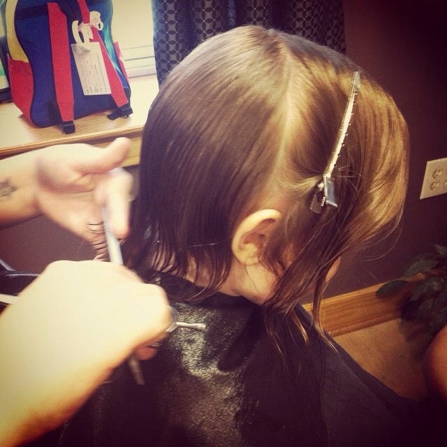 And here’s Corley Janey getting her first haircut!