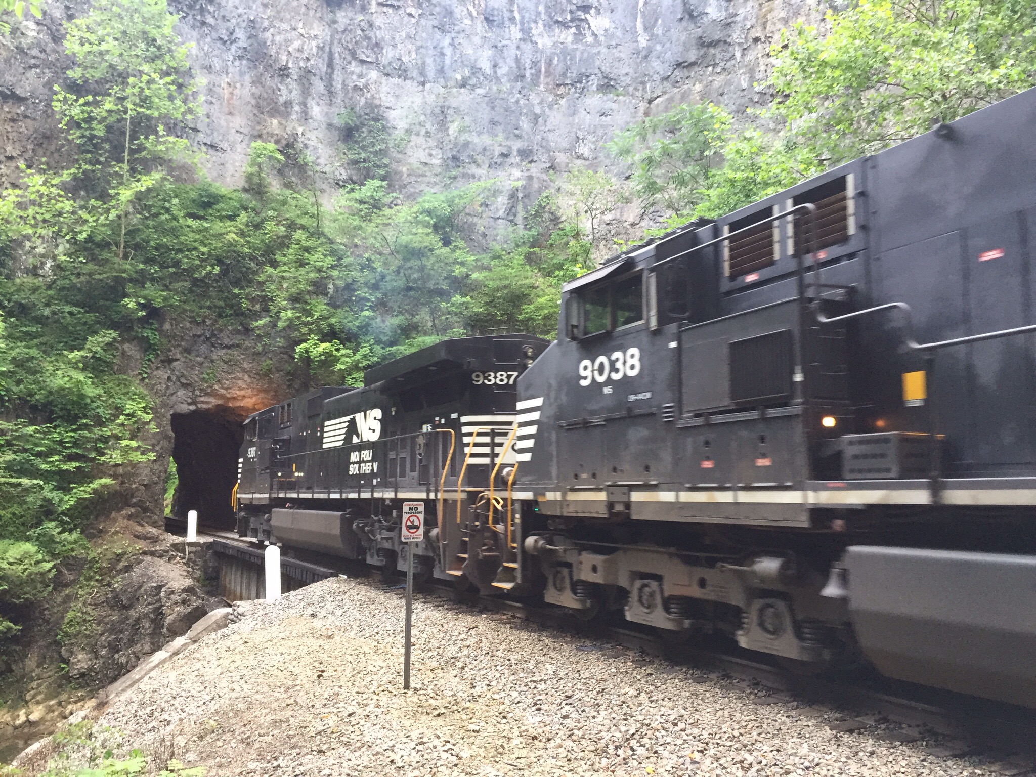 Not far from Lovers Leap was the natural tunnel, and to our delight, a train emerged not long after we arrived: