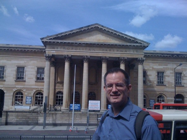 In 2010, Cheryl & our youngest son Michael & I visited England, and one the top things on my list to see was the Metropolitan Tabernacle Church in London: once the “megachurch” of the 1800s, where Charles Spurgeon, perhaps the greatest preacher of all time, had been pastor. The church held over 5000 people — in the 1800s! They said there were times that 8000 people crammed into it. I couldn’t wait to see it. We arrived at the front of it, and it had an impressive front edifice, with great columns, as you can see. (This picture really doesn’t do it justice.) But I was dismayed to discover that the impressive front of the church was just a FACADE! Most of the rest of the building besides the front burned down after Spurgeon died, in 1898, and when they rebuilt it, they kept the imposing facade, but behind it is a much smaller, unimpressive 1950s building that doesn’t hold anywhere near as many people. From the outside, Spurgeon’s Tabernacle today looks much more impressive than it really is inside.
