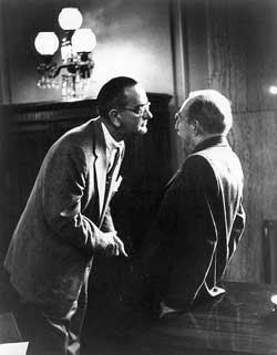 During the first years of Lyndon Johnson, before he became entangled in the Vietnam controversy, he was one of the most powerful presidents in U.S. History. Robert Caro outlines in his masterful 5 volume biography just how LBJ (as he became known) got things done, especially in the U.S. Senate and : he was master deal-maker, he was a manipulator, he could use flattery when he had to; he was an arm twister — and he would threaten. He used what became known as “The Johnson treatment”: he would lean his massive 6 foot 4 frame over you and intimidate you into voting his way. Here’s a picture someone took of him using “The Johnson Treatment” in a real-life situation: