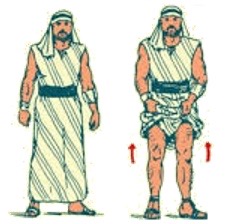 This first one shows a man in the process of “girding up his loins” or tucking in his robe:
