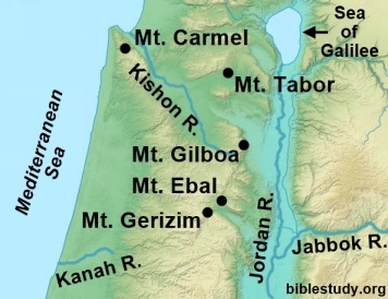 (You can use a MAP like this to show your class where Ebal and Gerazim were: Israel was still to the east (right) of the Jordan River, in the Plains of Moab).